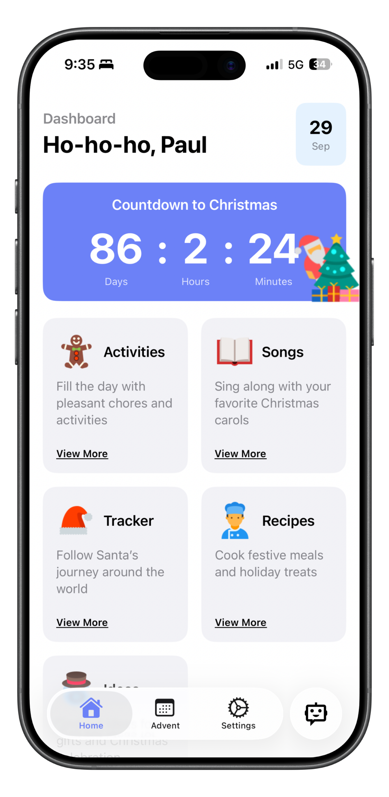Rebuilding the app from the ground up wasn’t a simple task, but it created an opportunity to refine the experience. I focused on delivering a cleaner, more minimal design that still captures the festive spirit. The result is an app that feels faster, lighter, and easier to maintain while staying true to its holiday roots.